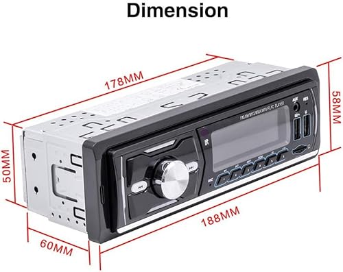 [Funzione autoradio] Dimensioni lettore mono auto: 188 * 58 * 60 mm, 2 porte USB, ingresso AUX / unità U (può essere inserito per riprodurre musica), TF supporta tutti i tipi di schede TF e SD (massimo 32G). Attraverso l'interfaccia di ingresso AUX, lettore MP3 con porta di uscita / ingresso audio/video cavo, è possibile connettersi all'amplificatore e godersi il divertimento del viaggio.
