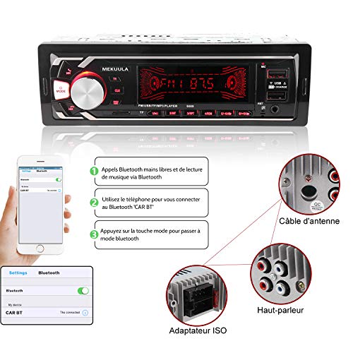 2 porte USB + slot TF. La nostra autoradio Bluetooth dispone di 2 porte USB, 1 porta AUX cavo e 1 porta TF. Una porta USB per trasmettere la musica, l'altra (2,1 A) supporta la ricarica rapida del telefono;