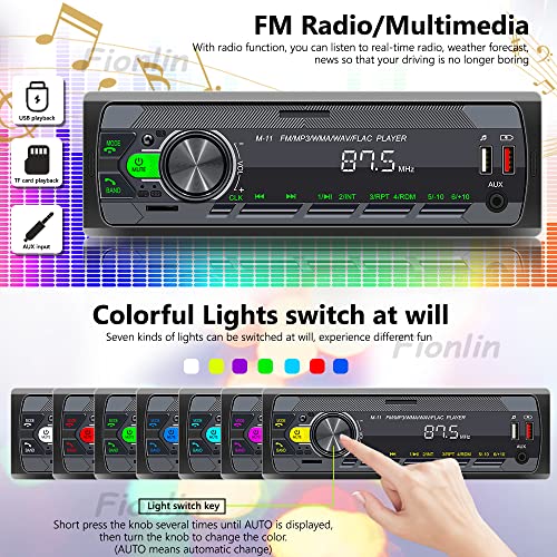 Autoradio Bluetooth vivavoce 1 DIN universale Auto Radio Stereo con Telecomando con lettore MP3 e port USB, Supporta FM/AUX/TF/WMA/WAV, 7 Luci Colori