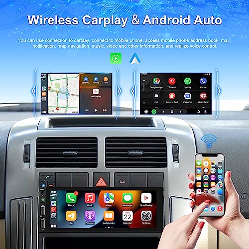Autoradio Bluetooth 1 DIN Wireless Apple CarPlay Wireless Android Auto con Schermo 6,9 Pollici Touchscreen Stereo Auto con Mirror Link per Android/iOS Radio FM USB SWC Retrocamera Telecomando