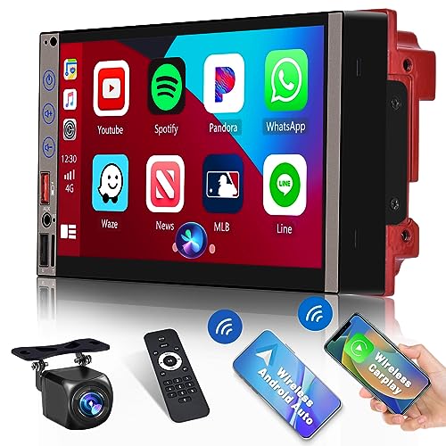 7" Autoradio Bluetooth 2 Din con Wireless Apple Carplay Wireless Android Auto Touchscreen Stereo Auto con Schermo Mirror Link USB TF AUX SWC Retrocamera