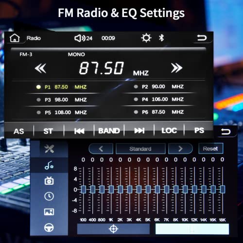 Bluetooth, Ricevitore Radio FM - Questa funzione Bluetooth incorporata del lettore MP5 per auto può essere collegata a telefoni cellulari, caricare automaticamente la rubrica, chiamate in vivavoce, guida più sicura, musica Bluetooth. Microfono incorporato e con microfono esterno, con trasmissione veloce e precisa, che hanno una voce chiara e stabile. La funzione di memorizzazione preimpostata del ricevitore radio FM digitale 18 ti tiene aggiornato su musica/notizie/sport (FM 87.5-108).