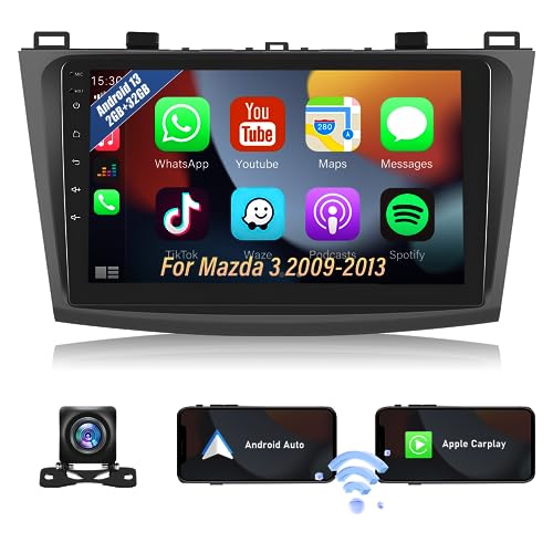Autoradio doppio din Android 13 per Mazda 3 2009-2013 con Carplay e Android auto, autoradio touch screen da 9 pollici con Bluetooth WIFI GPS FM/RDS HI-FI SWC 2USB +Telecamera di retromarcia