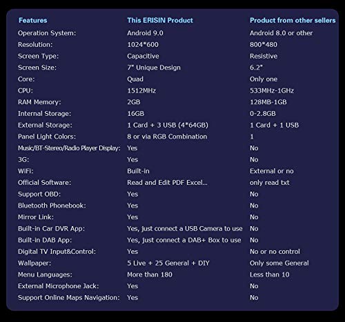 Autoradio universale Erisin ES4841U 7 pollici 2 DIN Android 9.0 WiFi DAB + DTV Bluetooth OBDII Nav