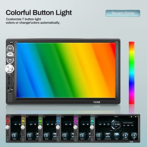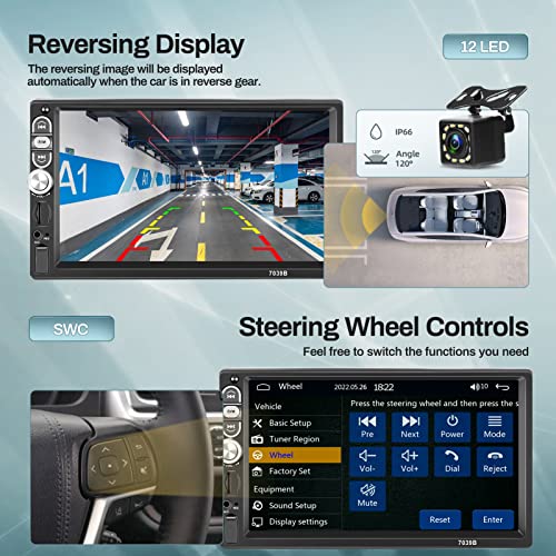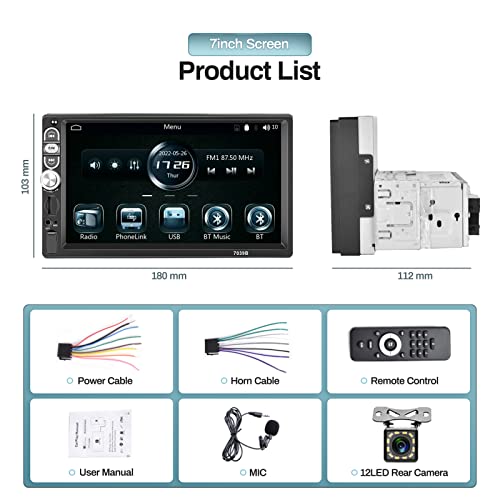 【Autoradio con Schermo Singolo Din】 La dimensione di installazione di questa autoradio 1 din è 178 * 48 * 103 mm. Il touch screen da 7 pollici offre un'esperienza visiva e tattile confortevole, supporta ingressi USB 2.0, tasti retroilluminati a sette colori, scheda TF/ingresso Aux, modalità equalizzatore multibanda. L'autoradio include una telecamera di backup e un microfono esterno.