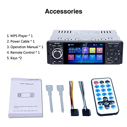 1 Din Autoradio MP5 stereo, touch screen da 4,1 pollici, USB, 1080P video, Mirror Link, Bluetooth, AUX, FM