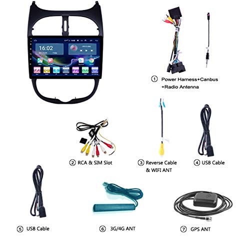 Autoradio, Touchscreen HD Autoradio da 9 pollici, Android 10 per Peugeot 206 2000-2016, Lettore multimediale Navigazione stereo con autoradio, WIFI / 4G (opzionale),4g+wifi 1g+32g