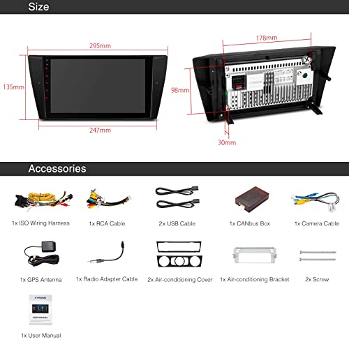 Modelli e anni di applicazione per BMW E90 berlina (2005-2012), E91 Touring (2005-2012), E92 Coupe (2006-2013), per BMW E93 Cabrio (2007-2013). ), (E9. 0 / E92 / E93) M3 (2007-2012). Pannello frontale: 295* 247* 135mm. Unità testa: 178x98x30mm
