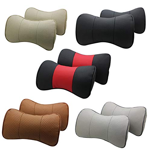 AutoSunShine, 2 cuscini per poggiatesta auto, in vera pelle, per poggiatesta e collo, colore grigio