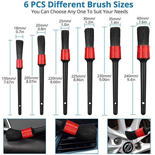 【Kit per autolavaggio】6 Tipi diversi di spazzole, risolve le esigenze, raggiunge facilmente i dadi delle ruote o spazzi stretti. Ideale per pulizie sia esterno ed interno.