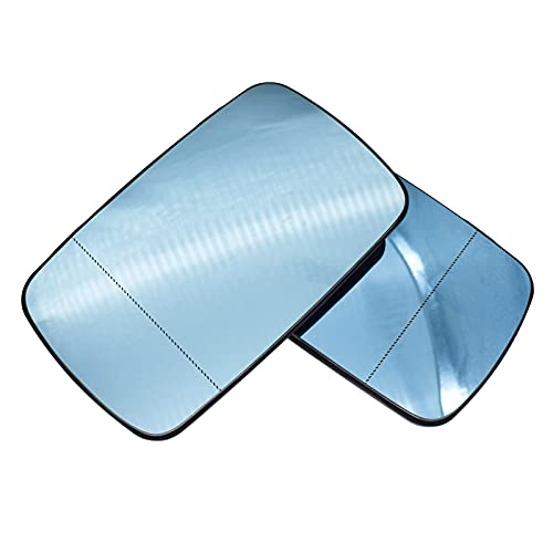 AUTOXBERT Vetro di ricambio per specchietto retrovisore BMW E46 E39 sinistro + destro, riscaldabile convesso, blu, lato conducente + lato passeggero, 15,5 cm, vetro di ricambio con piastra di supporto