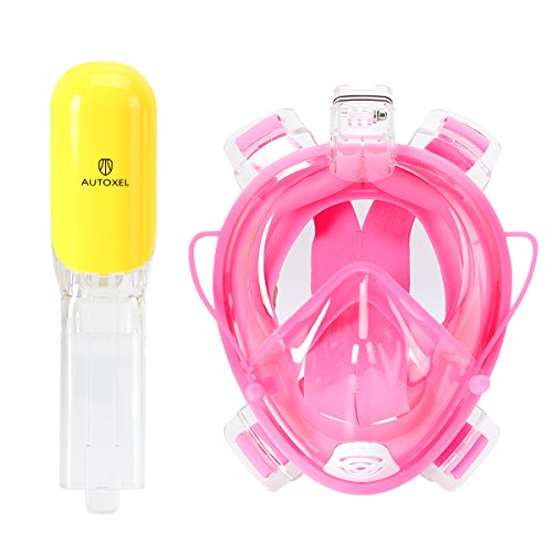AUTOXEL Maschera da Snorkeling, Maschera Subacquea con 180 gradi Visione Panoramica, Tubo Rimovibile, GoPro Compatibile, Maschera da Immersione Anti-Appannamento e Anti-Perdita per Adulti, Rosa S/M