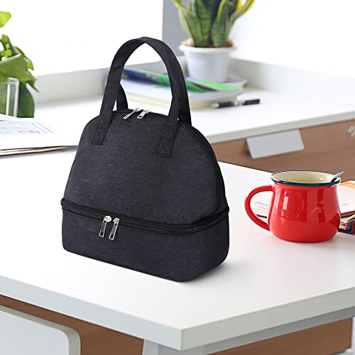 Autrucker Borsa termica a doppio scomparto per il pranzo da donna, borsa termica per uomo, leggera e portatile, per scuola, picnic, campeggio, viaggi, colore: nero