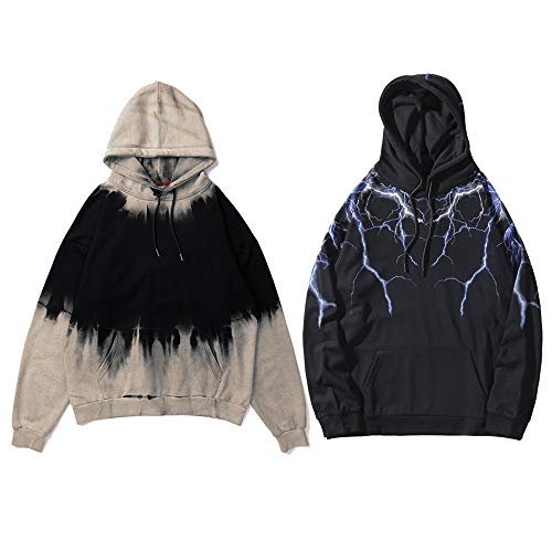 Autunno Inverno Felpa con Cappuccio Uomo Stile Fulmine Tinto Hip Hop Felpa Pullover Cotone Inverno Felpa Nero M