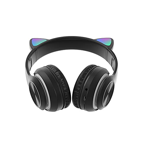 AUTUUCKEE Cuffie da gioco senza fili con suono chiaro 3D Stereo Cat Ear, pieghevoli, Bluetooth lampeggiante LED che si accendono sopra l'orecchio con microfono (nero)