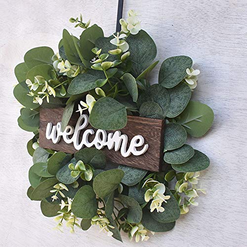AUTUUCKEE Ghirlanda di eucalipto, 30,5 cm, ghirlanda di benvenuto, ghirlanda artificiale per feste per la porta d'ingresso, ghirlanda estiva (verde)