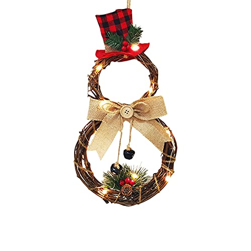 AUTUUCKEE Ghirlanda di Natale illuminata, corona con pupazzo di neve a forma di corona per porta d'ingresso, casa e decorazione da parete, ciondolo natalizio pre illuminato a batteria (dimensioni: A)