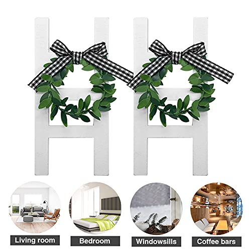AUTUUCKEE - 2 scalette in legno rustico, per decorare il vassoio a scala, in legno, decorazione per la casa o per la casa o la foto, colore: bianco