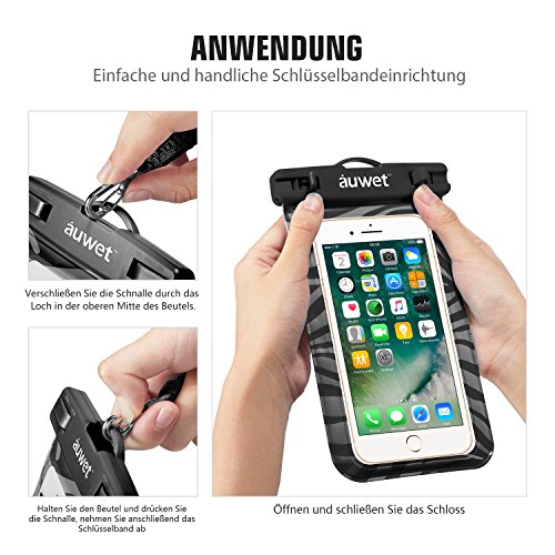 Auwet Custodia Impermeabile, Tasca Impermeabile con Finestre Trasparenti Sigillata, Custodia per iPhone 6/6s/plus/5/5s, Samsung Galaxy S6/S5/S7, Note 4/3 per Barca/Nuoto/Immersioni/Pesca