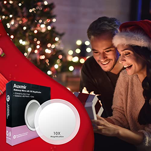 Auxmir Specchio Ingranditore 10X con 3 Ventose, Specchio Trucco 10CM, Specchio Cosmetico Adatto per Trucco Precisa, Depilare Sopracciglia, Pinzare, Eliminare Punti Neri, Ideale per Casa e Viaggio