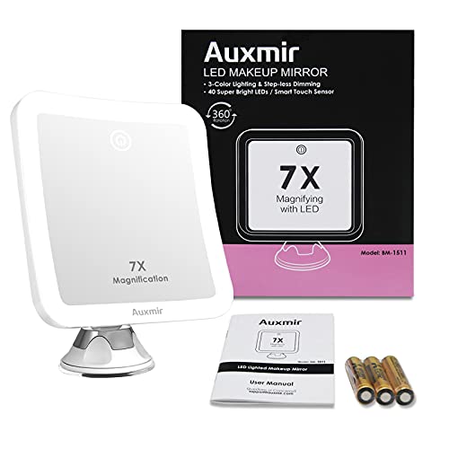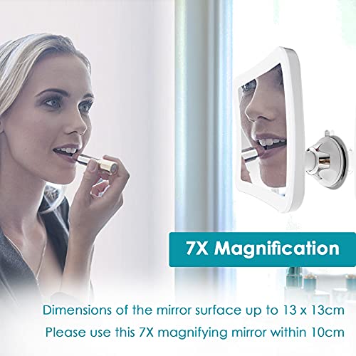 Auxmir Specchio da Trucco LED Ingrandimento 7X Specchio Ingranditore Illuminato per Bagno Specchio Quadrato a Ventosa 360° Girevole Portabile senza Fili 13 x 13CM