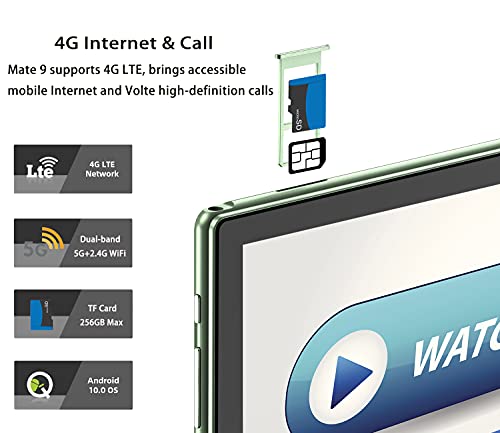 Tablet Android 4G da 10,1 pollici: il tablet supporta chiamate di rete 4G/accesso a Internet, realizza chiamate simultanee e accesso a Internet e ha anche pieno accesso a Google Play e scarica le app che ami. Inoltre puoi portare il tuo intrattenimento con te ovunque senza doversi preoccupare del segnale di rete.