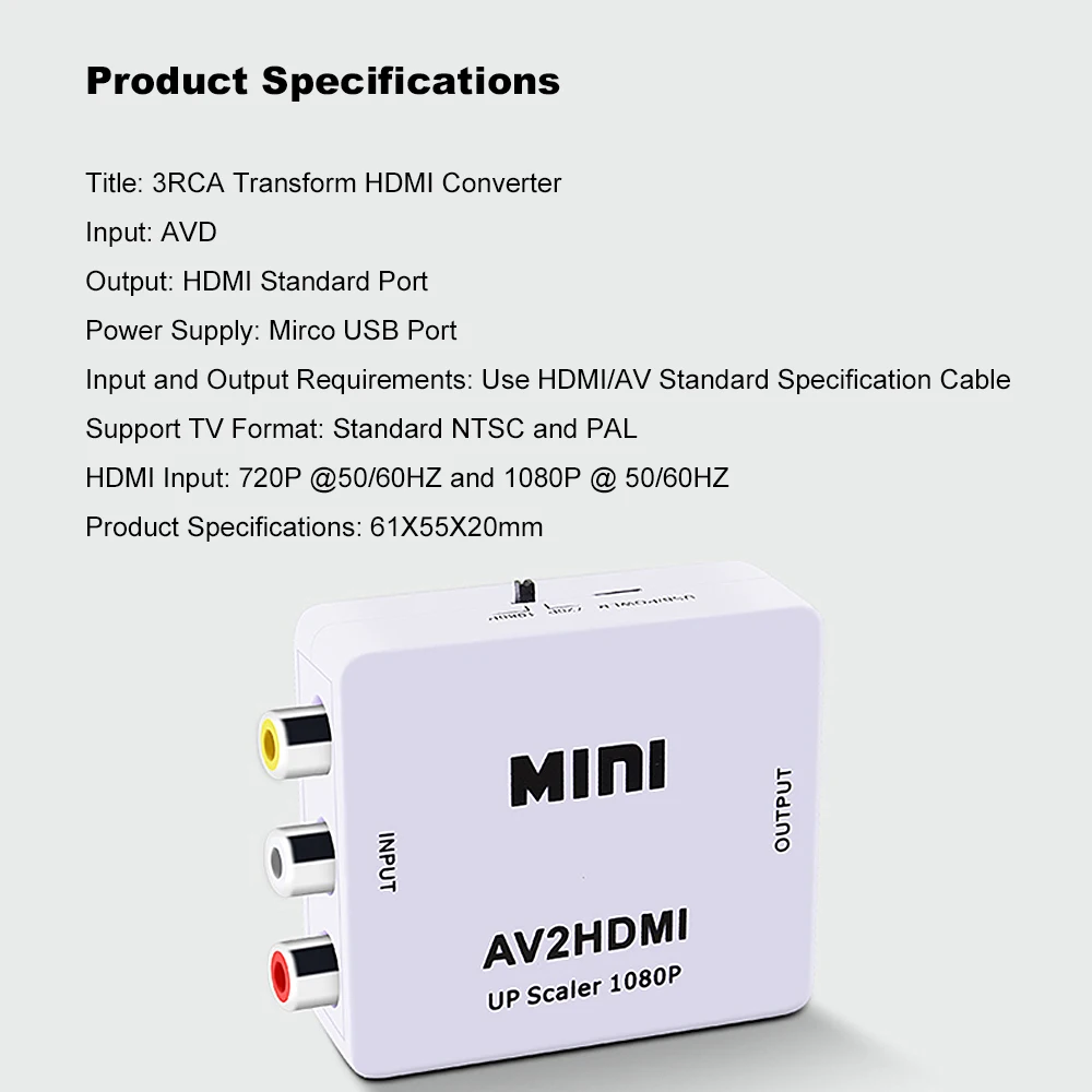Av2Hdmi 3RCA to HDMI Converter ovg Hdmi Converter Adapter AV CVBS Box 1080P Video AV2HDMI Converter for HDTV PS3 PS4 DVD PC
