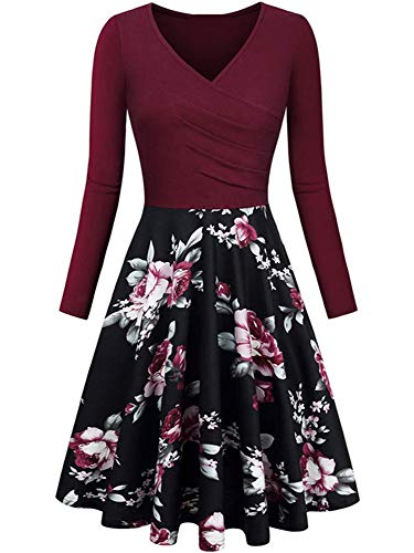 AVACOO Abito da donna, a maniche lunghe, elegante, in cotone