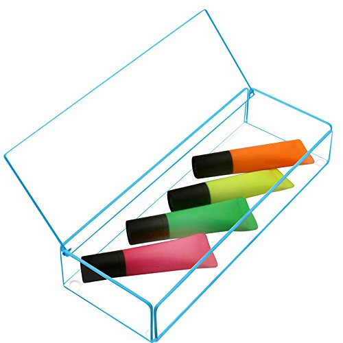 AVAILABLE IN PINK & AQUA BLUE Transparent Acrylic Stationery Jewellery Make Up Stackable Storage Medium Lidded Tray box with Bright Coloured Trims for Stacking with Medium Flash Tidy Trays and on Larg