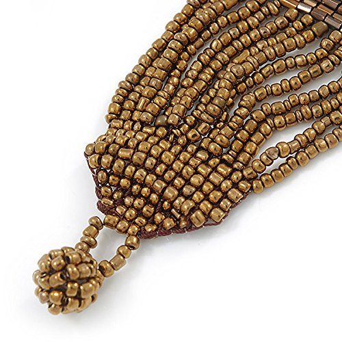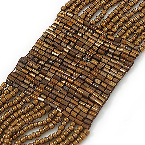 Avalaya - Bracciale in perle di vetro in bronzo dorato fatto a mano, con passante e chiusura a bottone, lunghezza 16 cm, lunghezza 3 cm