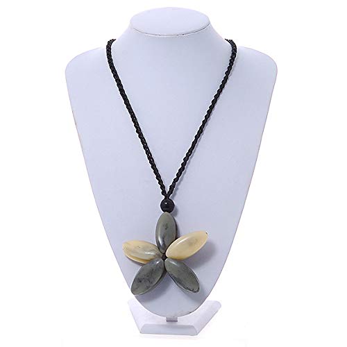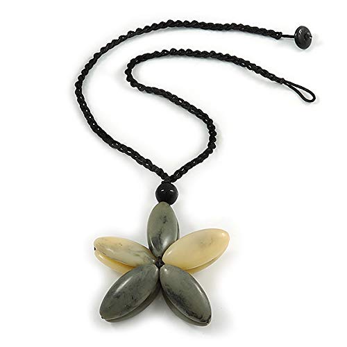 Avalaya Ciondolo a forma di fiore in resina grigio/beige oversize con cordino in cotone, 46 cm l/10 cm fiore, Misura unica, Resina corde Resina
