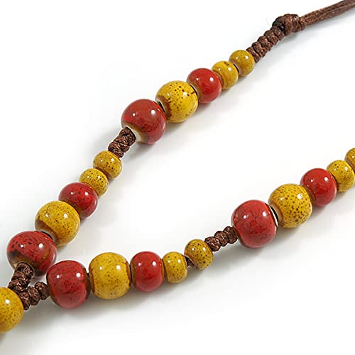 Avalaya Collana in ceramica gialla polverosa/rossa con nappa con cordoncino di seta marrone/70-80 cmL/regolabile, ceramica cavi