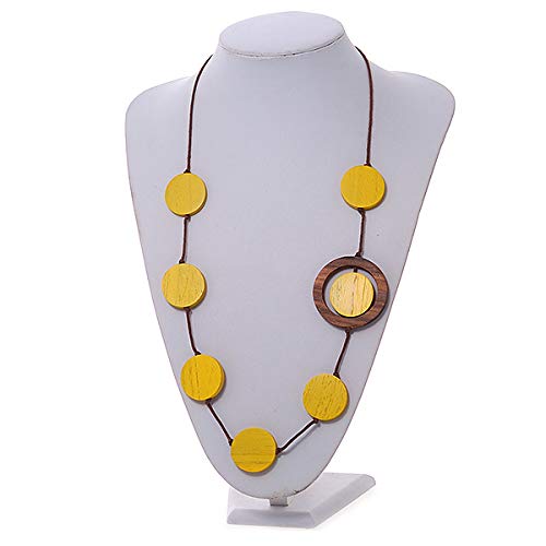 Avalaya Collana in corda di cotone con perline di legno e monete, lunghezza 80 cm, regolabile, Misura unica, Legno cavi Legno