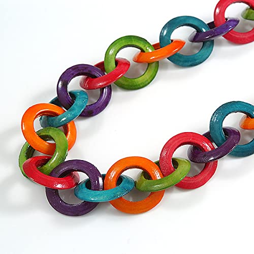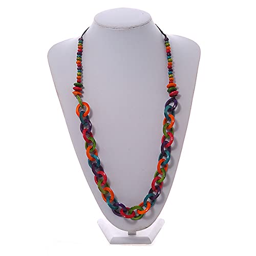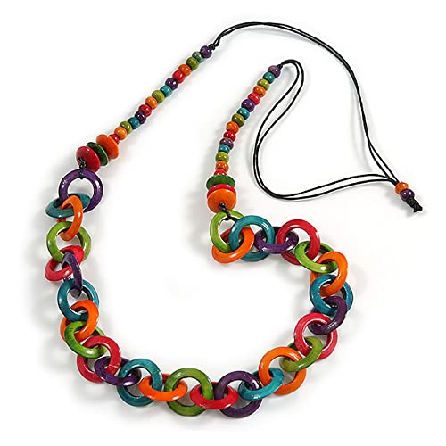 Avalaya Collana lunga con anello in legno multicolore e perline in cotone - 90 cm L/regolabile