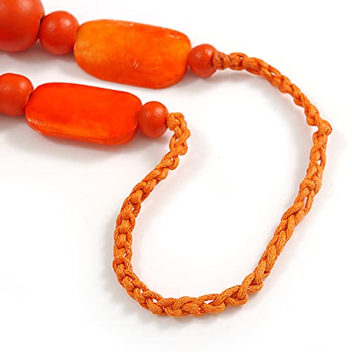 Avalaya Collana lunga lunga in legno dipinto arancione con cordoncino, lunghezza 80 cm