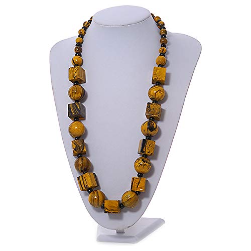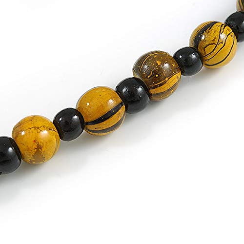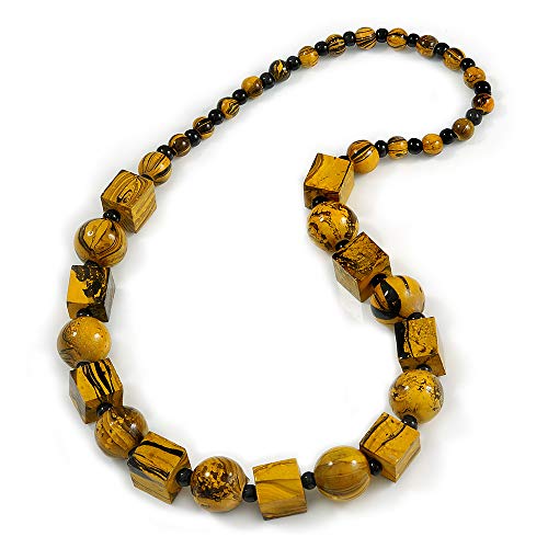 Avalaya - Collana lunga con perline in legno giallo senape/nero, lunghezza 76 cm
