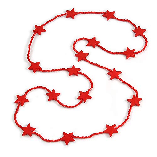 Avalaya Collana lunga in vetro a forma di stella acrilica rossa fuoco/104 cm L