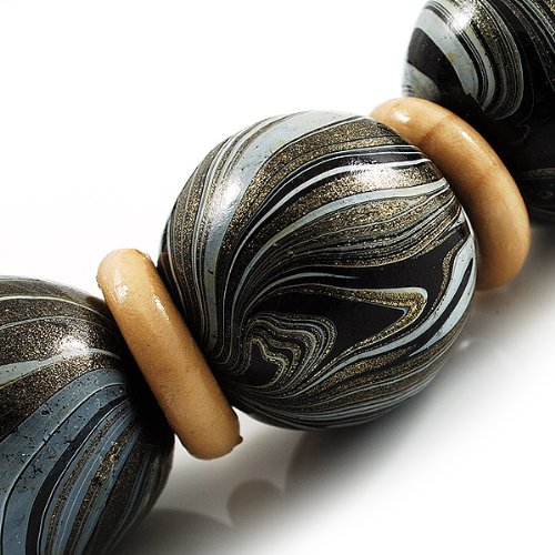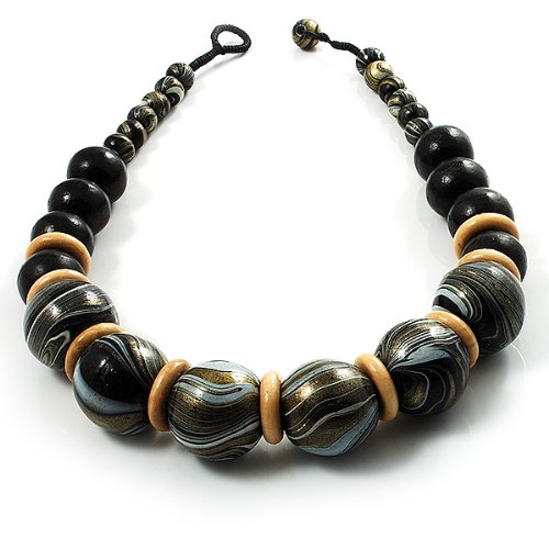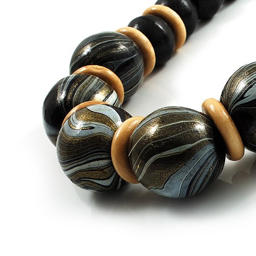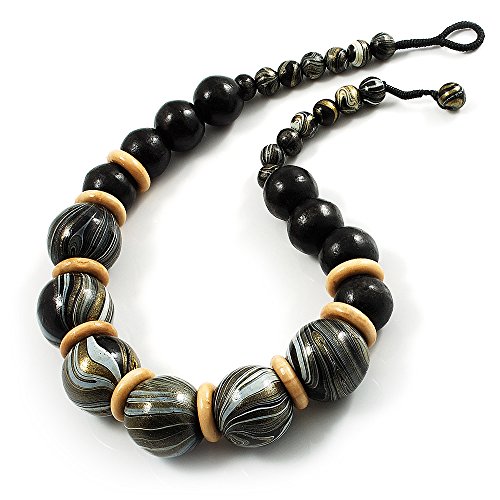 Avalaya - Collana con perline in legno di colore nero, oro e bianco, lunghezza 46 cm