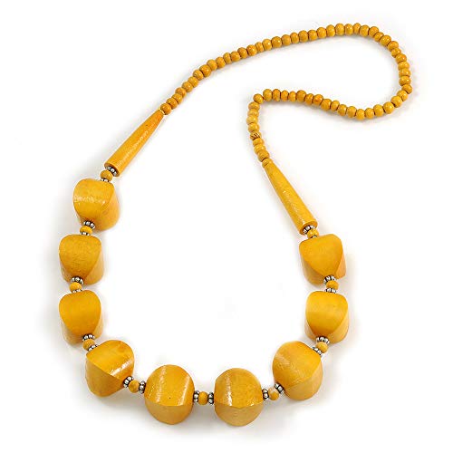 Avalaya Collana con perline di legno grosso, giallo polveroso, lunghezza 76 cm, Legno, senza pietra