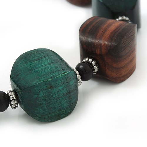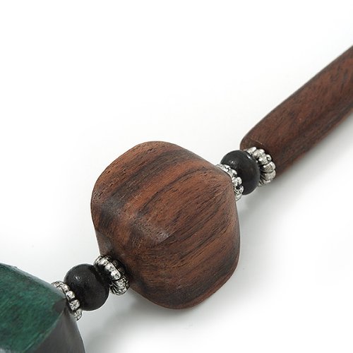 Avalaya - Collana con perline in legno marrone e verde scuro, lunghezza 80 cm