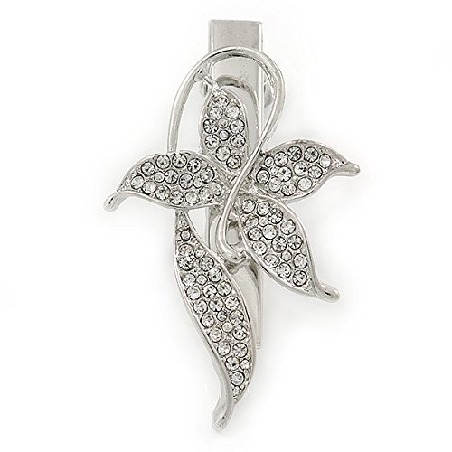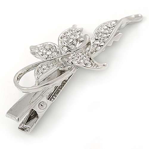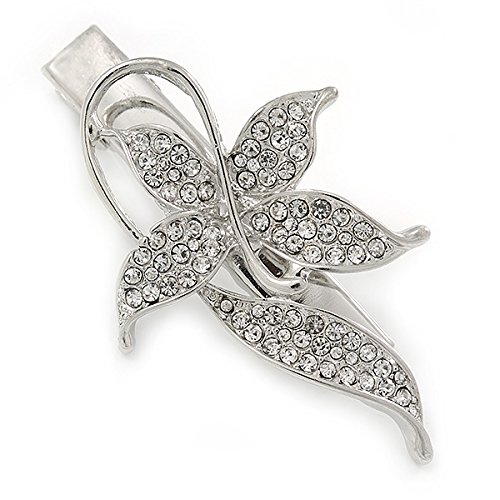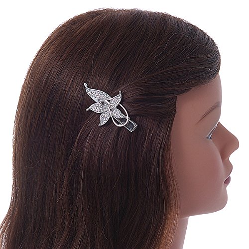 Avalaya Fermaglio per capelli a forma di farfalla in cristallo trasparente, con clip a morsetto color argento, 55 mm L, Metallo, cristallo