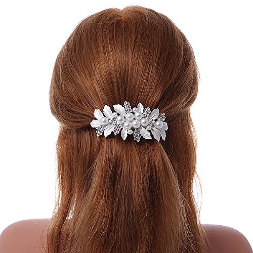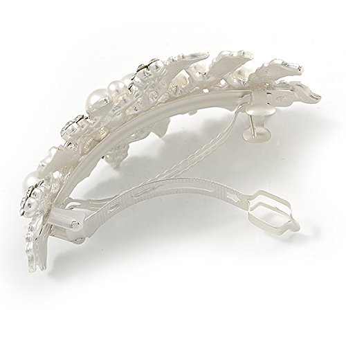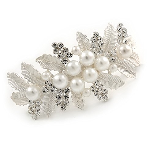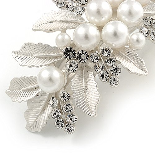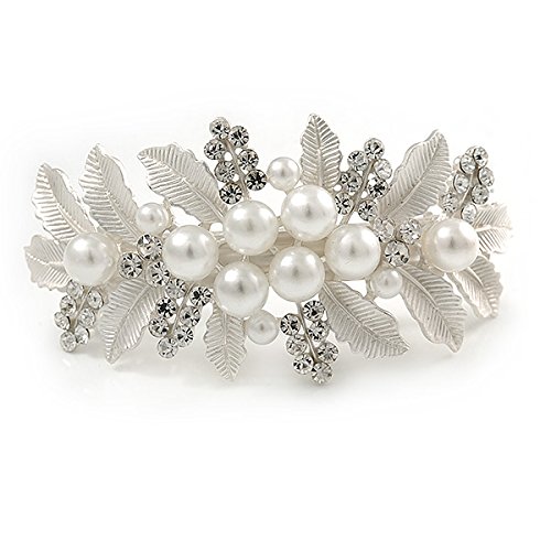 Avalaya - Fermaglio per capelli con perle finte e strass, colore argento brillante, 90 mm di diametro