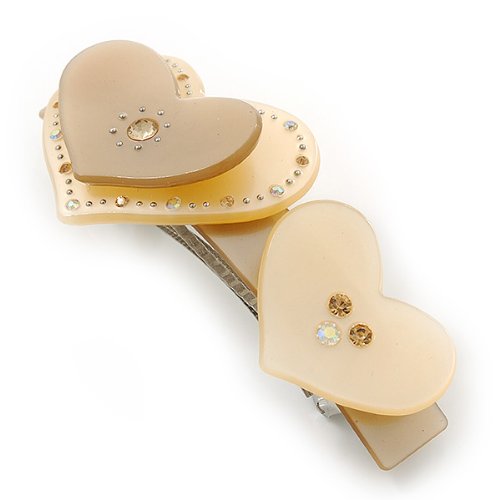 Avalaya - Fermaglio per capelli in plastica, con doppio cuore, 85 mm di diametro