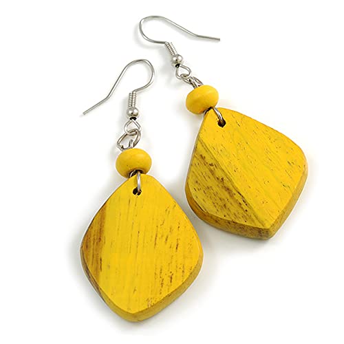Avalaya Orecchini pendenti in legno verniciato giallo antico a forma di diamante, lunghezza 60 mm, Legno, E06033