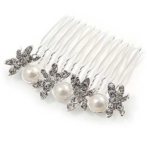 Avalaya - Pettine per capelli con farfalla in cristallo austriaco trasparente, misura media, per matrimonio, ballo di fine anno, 60 mm di larghezza