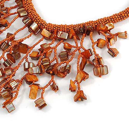 Avalaya Rusty Orange Shell Nugget Glass Bead Fringe Collana/42cm L/13cm Anteriore goccia
