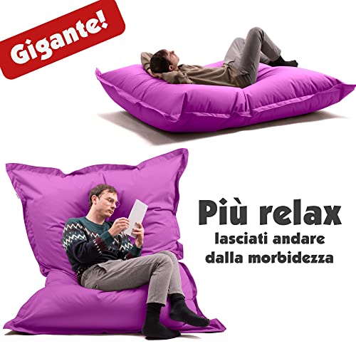Avalon Cuscino Gigante Puff Pouf Poltrona Sacco Imbottito 600L Tessuto antistrappo/Impermeabile con Sacca Interna Jive 200x140cm per Bambini e Adulti Made in Italy Colore Viola
