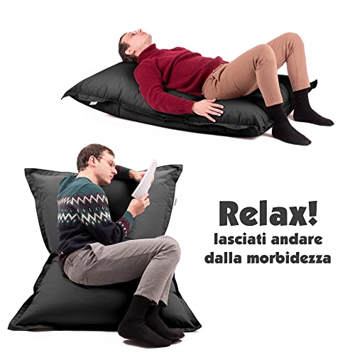 Avalon Cuscino Piccolo Puff Pouf Poltrona Sacco Imbottito 220L Tessuto antistrappo/Impermeabile con Sacca Interna Jive 130x90cm per Bambini Made in Italy Colore Nero