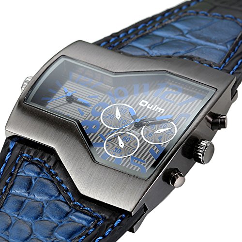 ♥ Design unico design- cinturino in pelle blu, Big Face Dual quadranti, Sharp looking, metterlo su per rivelare il vostro punto di vista alla moda.