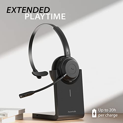 Avantalk Alto Solo - Cuffie Bluetooth Wireless Microfono e Cancellazione Rumore CVC per PC, Computer & Laptop Con Stand per Ricarica Batteria, Tasto Muto, e Modalità Audio via Filo